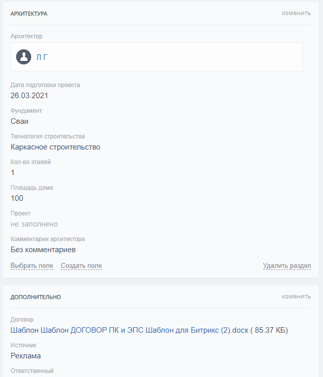 - CRM автоматически создаст нужные папки для ведения документации по объекту.