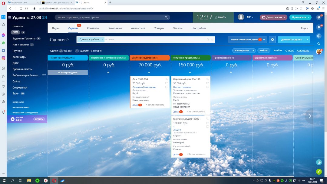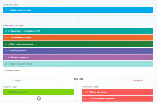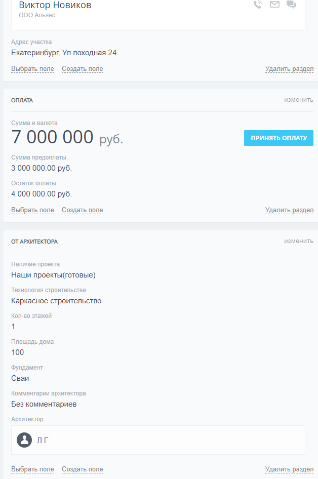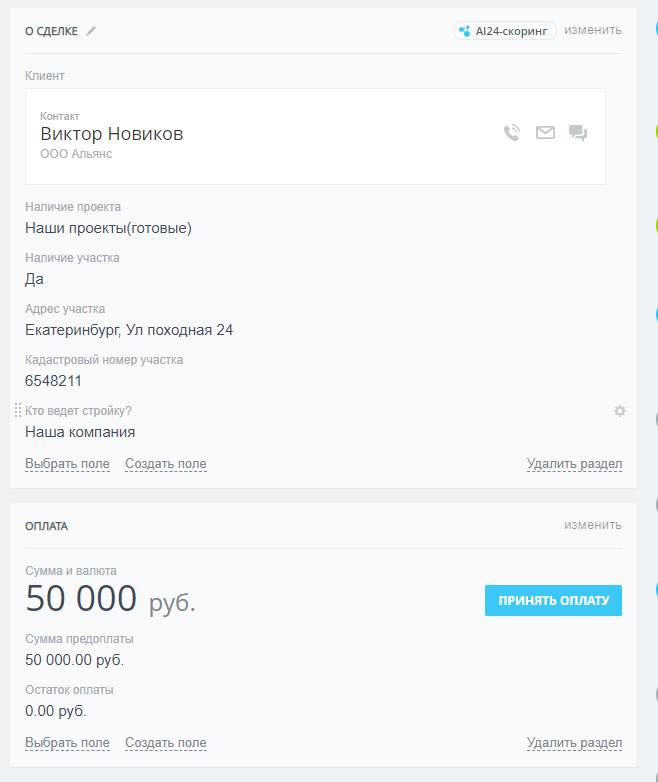 - копирование сделки в воронку "Строительство домов", если ваша компания ведет строительство.